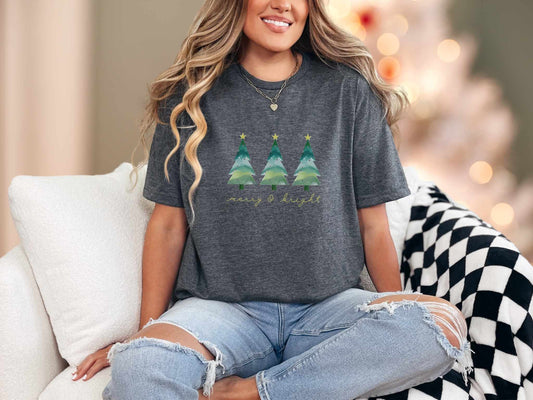 Merry and Bright Watercolor Tee