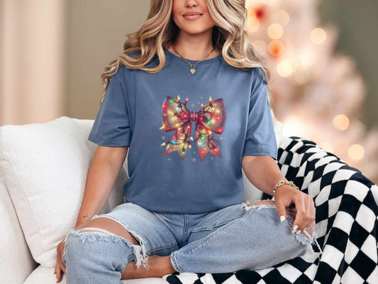Christmas Bow and Lights Tee