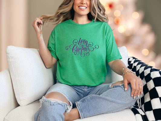 Purple Glitter Merry Christmas Tee
